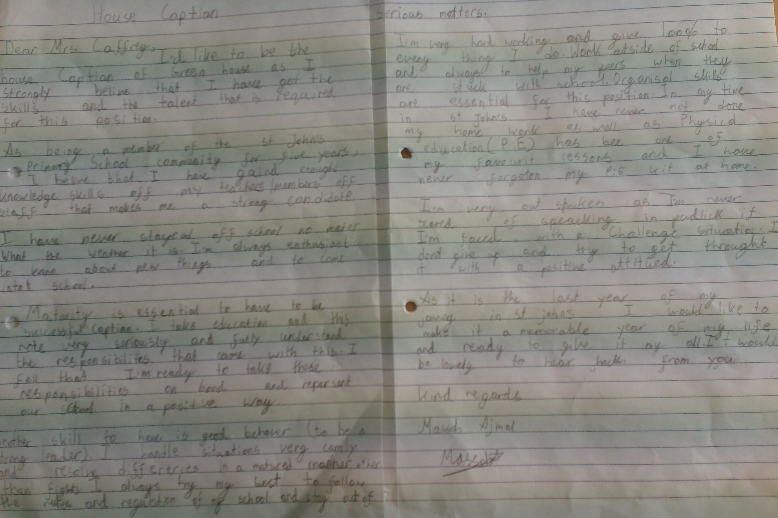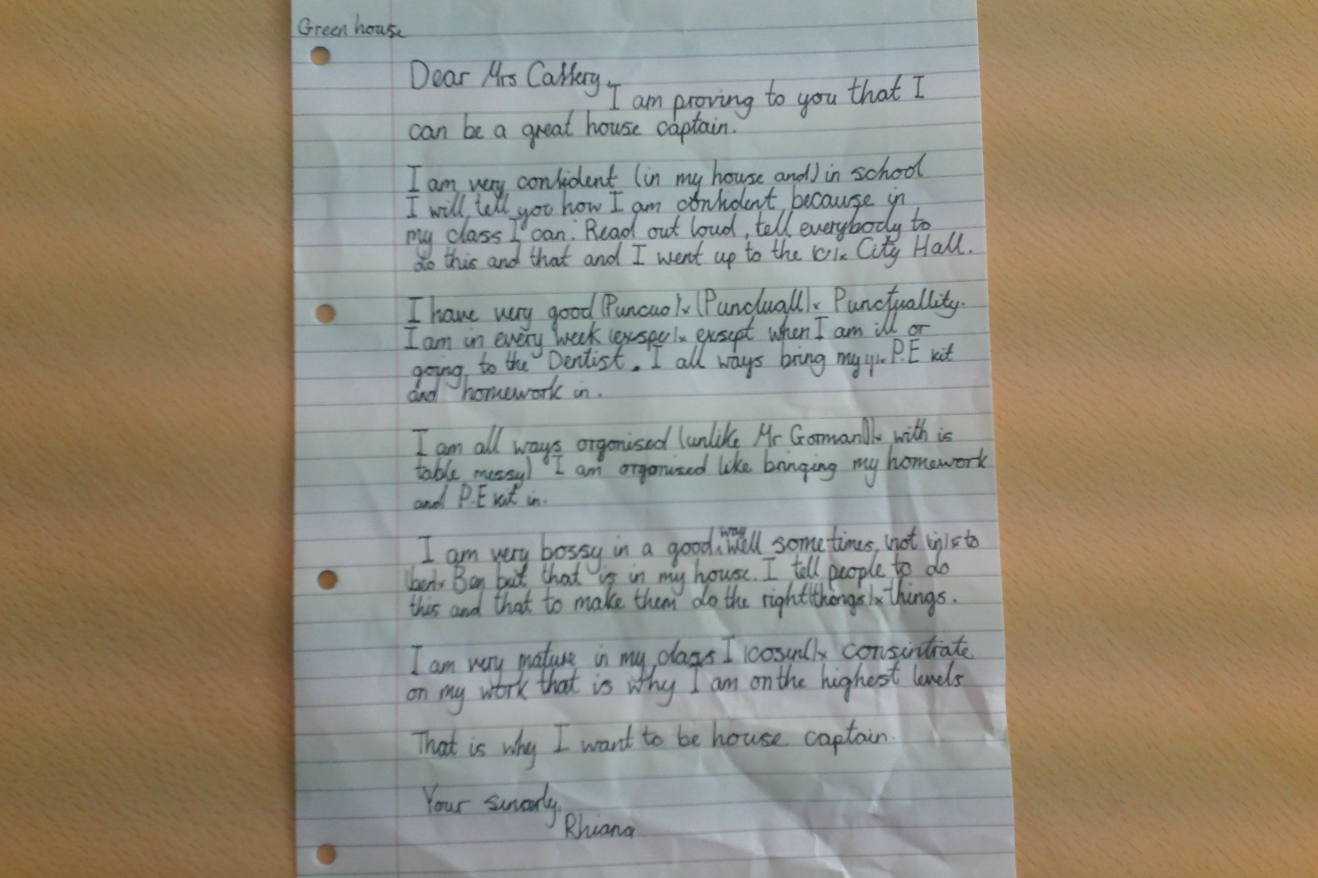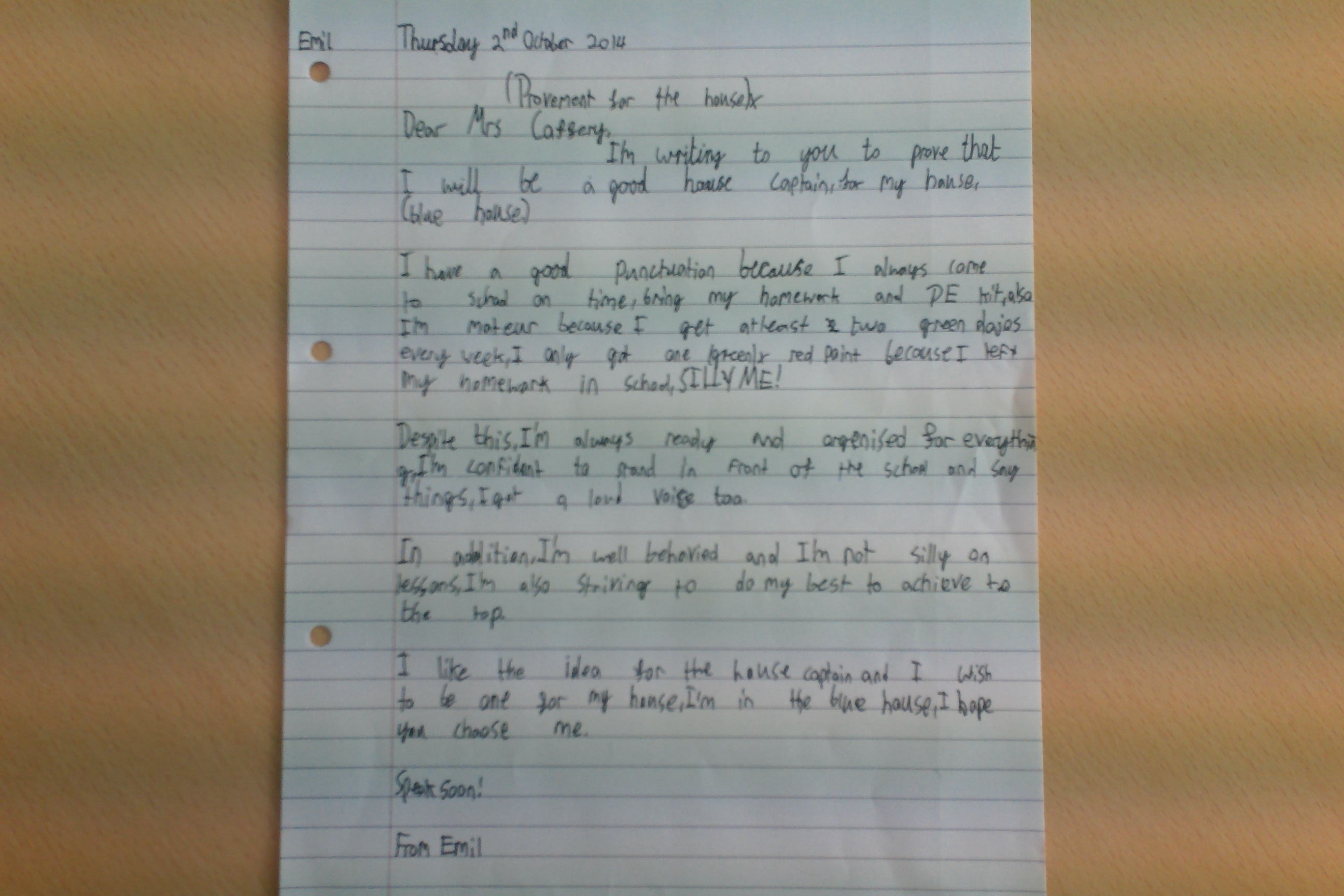 Children had to first write a letter of application to Mrs Caffrey, making clear why they felt they should get the job. They then had to prepare a 30 second presentation to persuade the whole school to vote for them. Elections were held (a secret ballot) and the winners announced in assembly. All of the staff were incredibly impressed by everyone's attitude to the elections and feel that our House Captains are perfect for the job!!